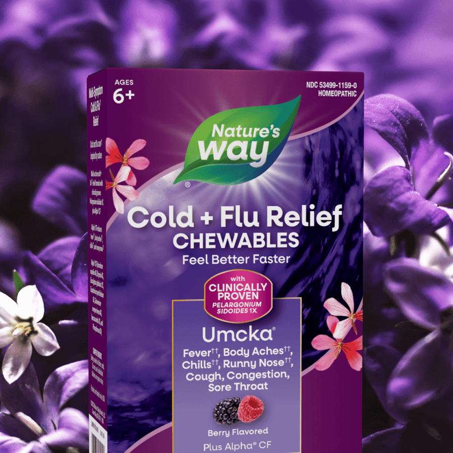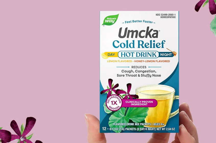 Find relief from your cold symptoms and get back on track with Umcka. Pelargonium sidoides 1X, an ingredient in our Umcka products, is clinically proven to shorten and reduce the severity of common colds, plus nasal, throat, and bronchial irritations. It also speeds recovery time so you can feel better faster!